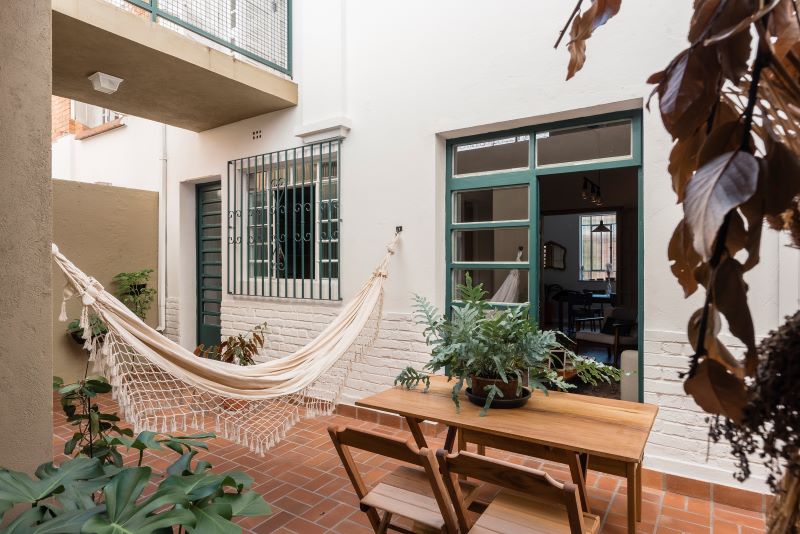 A rede é o elemento ideal para criar um cantinho de descanso. Camila a usou como elemento central em um projeto de sobrado, integrando-a ao paisagismo e criando um ambiente de relaxamento. As redes são versáteis, confortáveis e trazem um toque de tranquilidade, seja em áreas grandes ou pequenas.