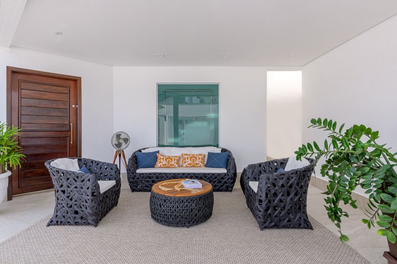 Se praticidade é essencial, as peças com capas removíveis são ideais. Elas podem ser lavadas, facilitando a manutenção, e ainda garantem um visual moderno. A arquiteta também sugere tapetes impermeáveis para adicionar cor e conforto sem perder a funcionalidade. Móveis em fibra sintética ou polywood também são duráveis e resistentes, mantendo a estética por mais tempo.