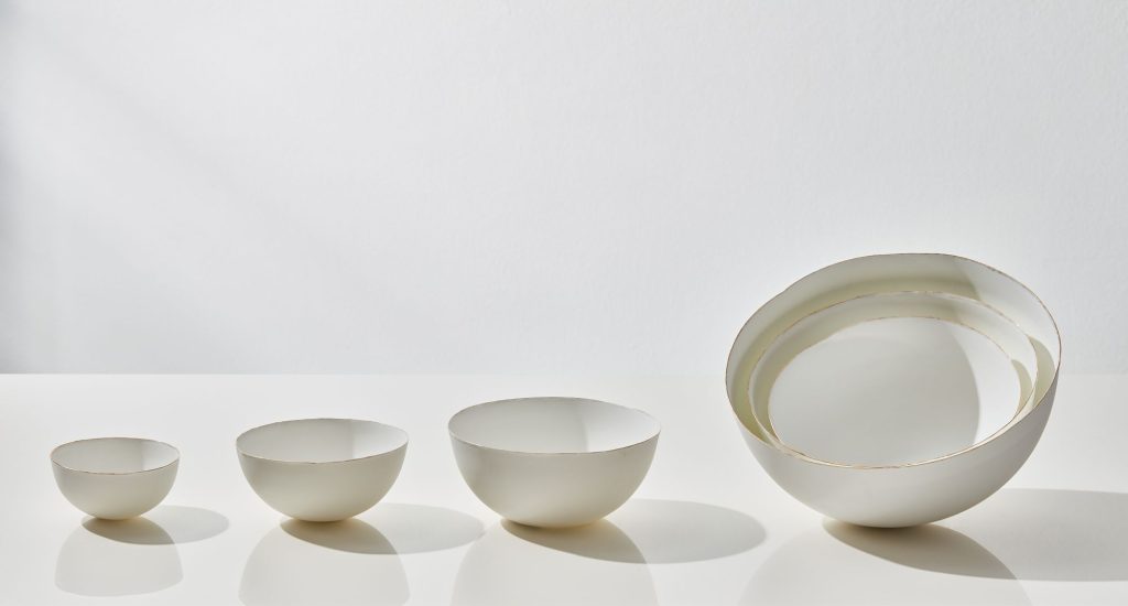 Na coleção Oriri, cujo nome em latim significa “nascer”, Lilian parte de formas orgânicas e fluidas para traduzir o estágio inaugural da vida. As peças de paredes finas como casca de ovo revelam uma delicadeza ímpar.