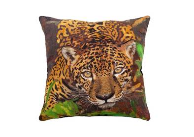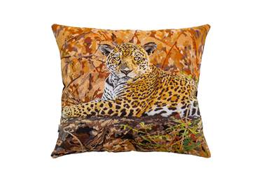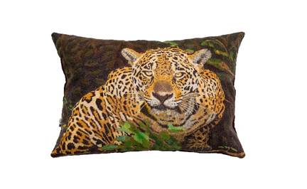 Almofada bordada a partir da foto Onça-pintada (Panthera onca), Rio Três Irmãos, Pantanal do Mato Grosso do Sul – 2018