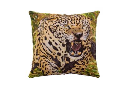 Almofada bordada a partir da foto Onça-pintada (Panthera onca). Rio Piquiri, Pantanal do Mato Grosso do Sul — 2017