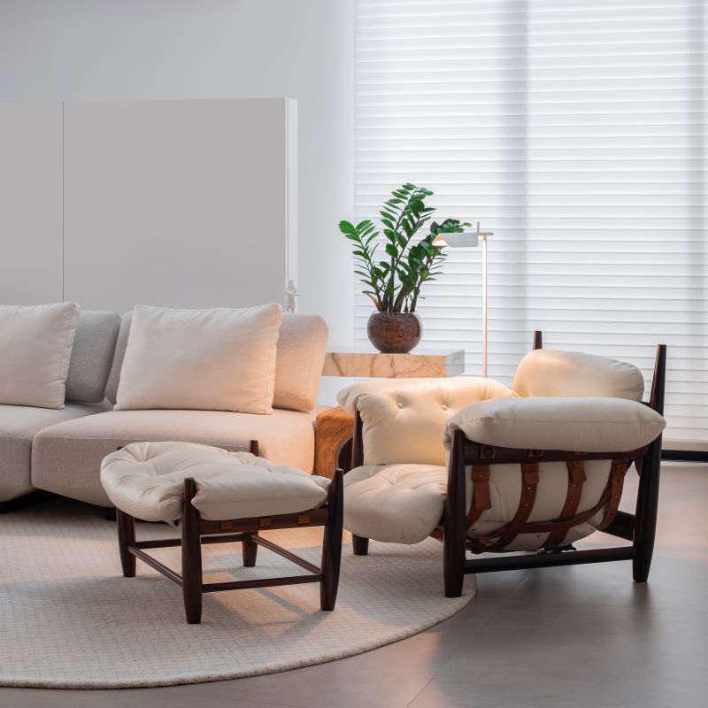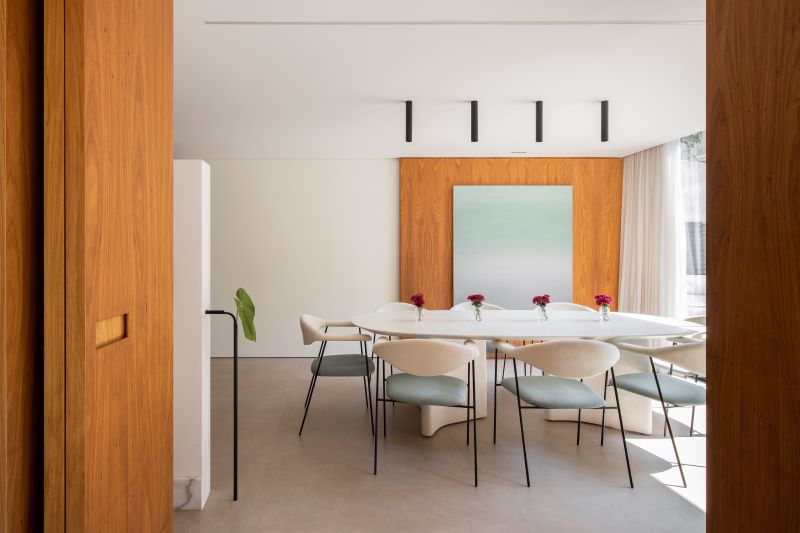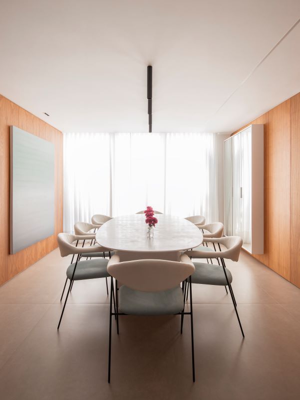 E há ainda o design como linguagem. Poltronas de Sergio Rodrigues, luminárias Flos, peças assinadas por grandes nomes. O mobiliário vai além da estética — ele ajuda a contar a história da casa. “Os moradores valorizam tanto o design contemporâneo quanto os clássicos. Essa mistura aparece em cada ambiente, costurando passado e presente com naturalidade”, comenta Fontana.