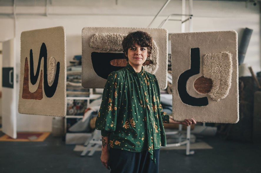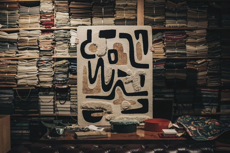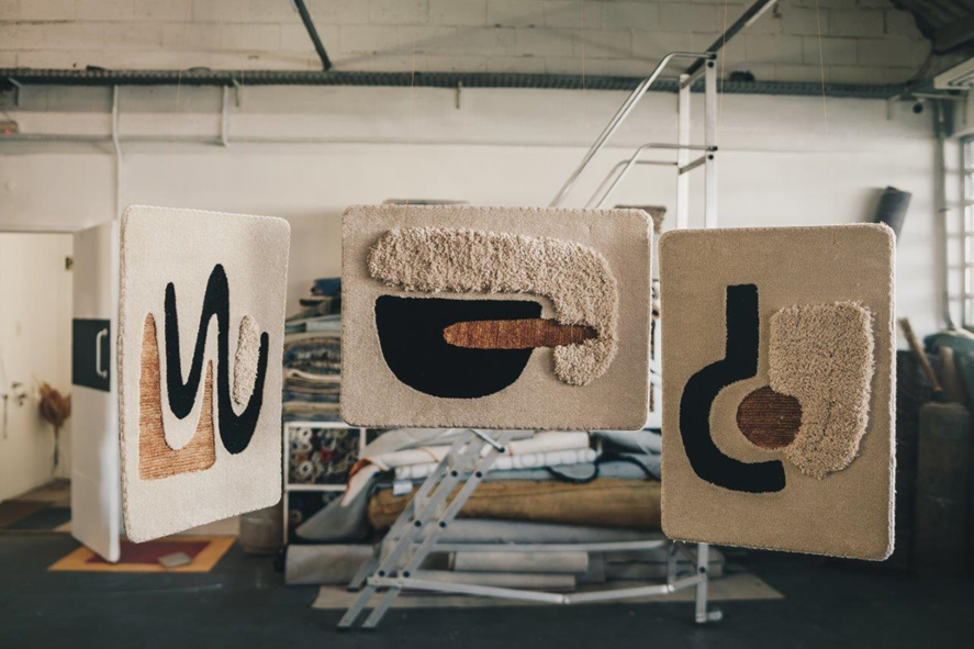As peças foram produzidas à mão no ateliê da by Kamy Verde, que desenvolve tapetes e tapeçarias a partir da técnica de upcycling, onde a proposta é reaproveitar fragmentos (sobras e recortes da produção) como matéria-prima para novos produtos, unindo design, arte e consciência ambiental.