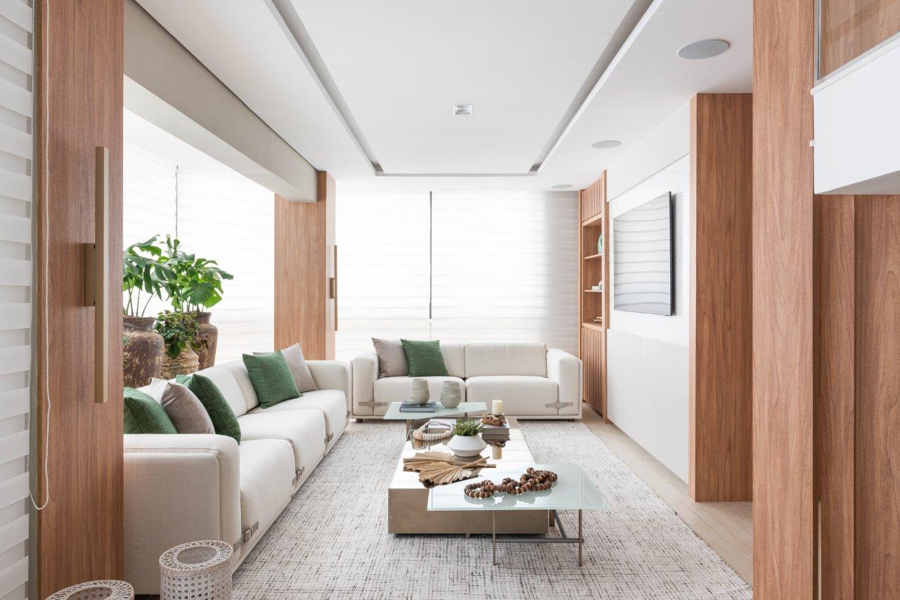 Assinada pelo escritório Caroline Andrusko Arquitetos, esta cobertura de 390m², localizada no litoral do Paraná, foi concebida para um casal com quatro filhos, brasileiros que vivem em Miami há 30 anos. Ele atua como CEO de uma grande empresa e ela dedica-se à família e aos estudos. O desejo do casal era transformar o apartamento em um refúgio de férias no Brasil, resgatando memórias afetivas e oferecendo conforto e acolhimento durante os períodos de descanso.