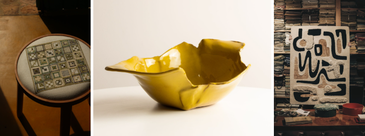 Banco Bordado, de Pedro Luna, Coleção Orinendo, de Sandra Arruda, e Tapetes da By Kamy + Ju Amora estão entre os destaques