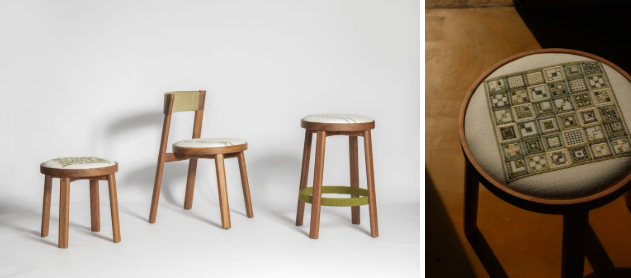Linha composta por cadeira, banqueta e banco que homenageia a tradição do bordado popular brasileiro. Elementos como o bastidor e o novelo são reinterpretados em estruturas de madeira maciça e fios de algodão enovelados, oferecendo conforto tátil e identidade poética às peças. A série Boa Noite, criada em parceria com as bordadeiras da Ilha do Ferro (AL), traz padrões tradicionais aplicados aos assentos, em diálogo entre memória, afeto e contemporaneidade .