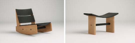 Banco e poltrona que investigam formas de sentar próximas ao chão. Com proporções baixas e curvas precisas, as peças evocam calma e contemplação, equilibrando robustez e fluidez em madeira de cedro rosa.