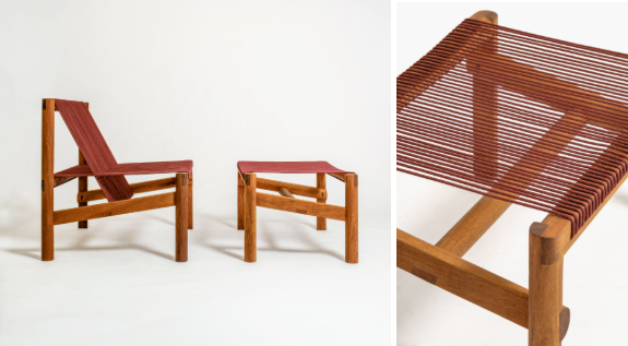 Cadeira, poltrona e banco de apoio que partem da linguagem dos teares manuais. Estruturas em madeira maciça unidas por encaixes sustentam assento e encosto em cordas entrelaçadas, criando superfícies que acolhem o corpo. O equilíbrio entre materiais e desenho torna as peças adequadas para áreas internas e externas, com formas curvas e trama vazada que contribuem para a durabilidade.