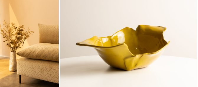 A designer expande a coleção Art Déco e as Paisagens do Sertão para sofás modulares e biombos, e lança a série Orinendo em cerâmica, que traduz gestos e dobras em barro.