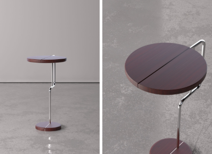 Mesa construída a partir de retalhos de madeira que propõe contemplação e interação. Mais do que funcional, o móvel se apresenta como escultura interativa.