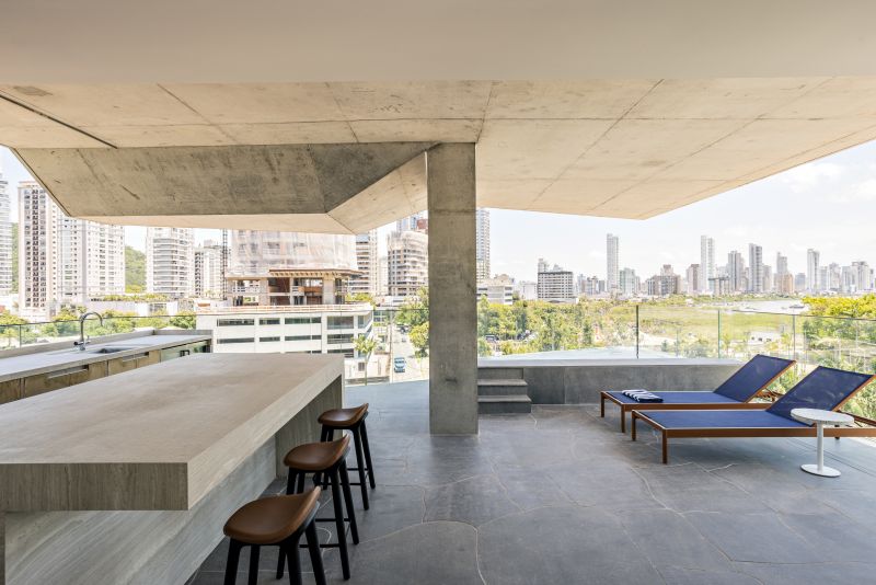 Com arquitetura disruptiva em concreto aparente e reconhecimentos internacionais como os prêmios Global Architecture & Design Awards 2023 e o People’s Choice Award do LOOP Design Awards 2024, Infinitá Treehouse, da Blue Heaven Empreendimentos, em Itajaí (SC), tem chamado a atenção por adotar o conceito de “casa na árvore”. Com cerca de 70 metros de altura e 15 residências amplas que variam de 350 m² a mais de 805 m², posiciona o morador entre mar e mata, com varandas amplas, piscina de vidro suspensa em laje inclinada, e vidros do piso ao teto que integra os ambientes à natureza ao redor.