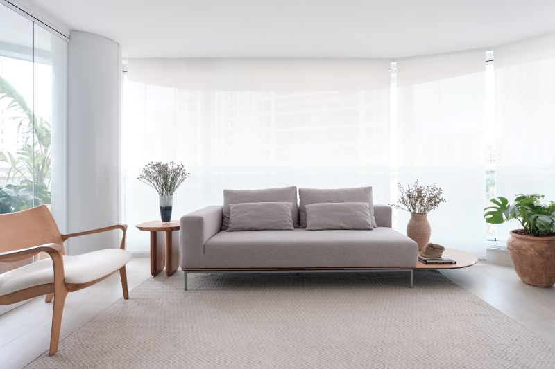 O sofá Napoli, da Way Design, foi uma escolha ousada do cliente — um modelo orgânico de mais de cinco metros que redefiniu o layout e se tornou o ponto de encontro da casa.