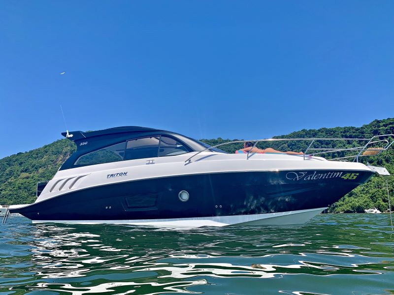 Sucesso de vendas no Brasil, a Triton 370 HT combina design clássico com características esportivas. A lancha entrega uma experiência completa com seus 11,40 metros de comprimento, duas camas de casal, área gourmet com churrasqueira e plataforma submergível para lazer na água. O cockpit versátil pode ser aberto ou fechado. Com capacidade para 14 pessoas de dia e 4 à noite, é uma embarcação que alia conforto interno, com cozinha completa e armários espaçosos, navegação segura com dois motores de 250 HP, e desempenho notável, alcançando até 32 milhas por hora.