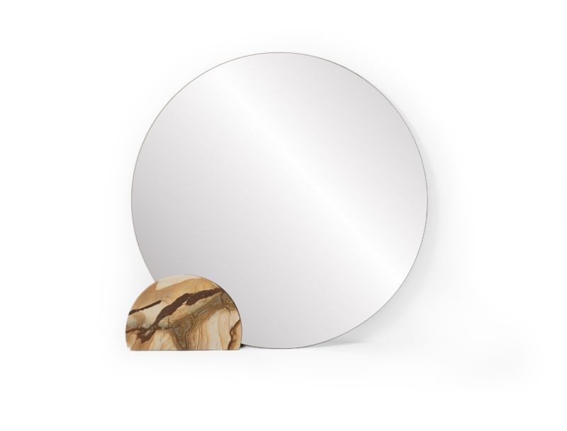O Espelho Aurora remete à ideia de continuidade e totalidade, enquanto sua base semicircular, em pedra, madeira maciça ou laca, evoca o instante em que a luz encontra o horizonte origem do seu nome. Na coleção Ciclos, o Aurora simboliza a relação entre reflexo e mudança. É uma peça que amplia os espaços e, ao mesmo tempo, devolve a imagem de quem somos no agora. O contraste entre o espelho e a base sólida cria equilíbrio visual unindo leveza e estrutura, contemplação e matéria.