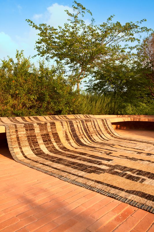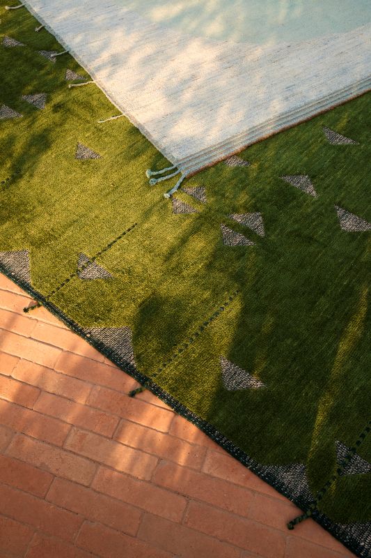 As áreas externas pedem leveza e harmonia com a natureza. Estampas geométricas, listras ou desenhos inspirados em elementos naturais são boas apostas. Cores neutras ou terrosas ajudam a integrar o tapete ao entorno. “Na Botteh, nosso olhar é sempre pelo equilíbrio entre estética e funcionalidade, sem abrir mão da identidade de cada espaço”, pontua o proprietário.