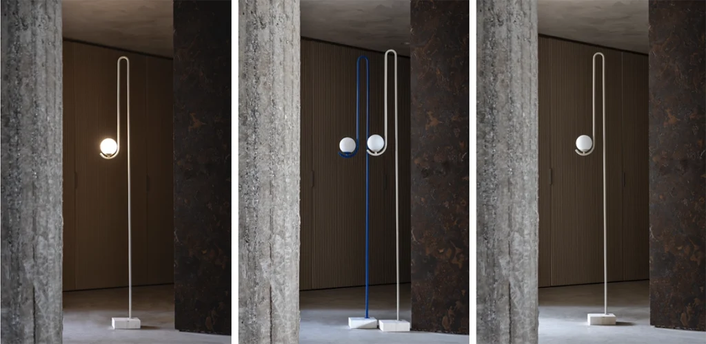 Produzida em aço tubular com pintura eletrostática, a peça está disponível nas cores preto, areia e azulJacque, com bases que variam entre o mármore Piguês e o Travertino Romano. Leve e delicada, a Mandú ilumina com sensibilidade e propõe novas proporções de presença. Uma peça que, como o personagem que a inspira, brinca com escalas e narrativas do corpo popular brasileiro.