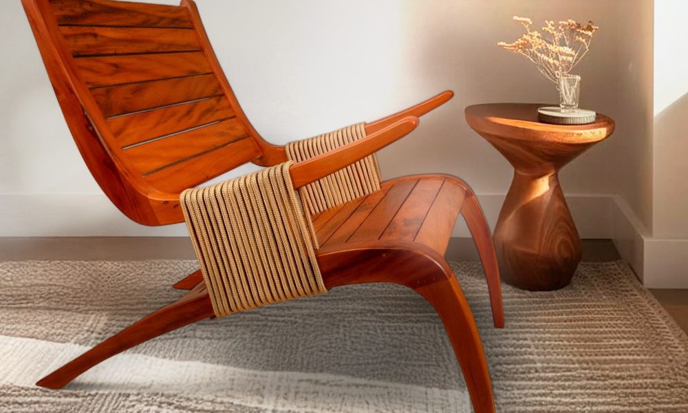 A tecnologia da reutilização da madeira fica implícita no acabamento e é igualmente notória no design. A ergonomia empregada à peça oferece conforto superior onde assento e encosto são pensados para acolher e relaxar. Uma peça funcional que traz a beleza da madeira, atrelada à sustentabilidade do reaproveitamento e que pode ser utilizada em diferentes ambientes, de salas a varandas. Vale destacar, além do reuso desta matéria que contribui para uma produção consciente, o charme do tom rosado dessa espécie que, também, traz antipragas naturais devido ao óleo ‘amargo’ que produz e, ao mesmo tempo, oferece densidade perfeita para a produção mobiliária.