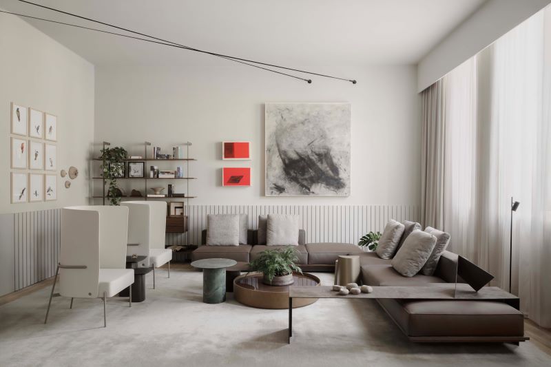O Living Raízes, de Manuela Senna se destaca como uma sala-bar inspirada na arte de receber. A composição valoriza formas orgânicas e texturas que evocam memória e pertencimento. Os tons terrosos criam uma atmosfera serena e sensorial, com foco no bem-estar.