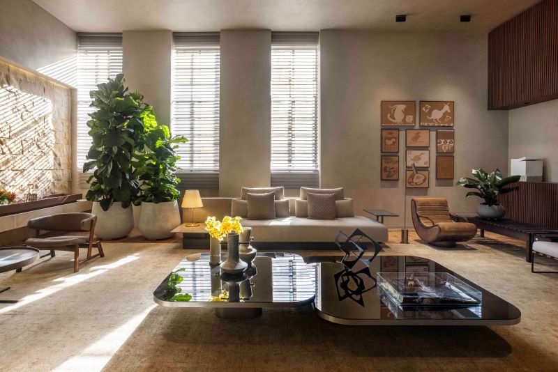 Com uma estética refinada e atual, o Living Mineiridade, de Flávia Roscoe, é uma homenagem à cultura do estado. Na curadoria, o equilíbrio do mobiliário com a arte, ocasionando um convite à permanência e contemplação. Entre os artistas, destaque paras as peças de Maria Lira Marques, ícone do Vale do Jequitinhonha, em contraste com a contemporaneidade dos também mineiros Ricardo Homem e Bruno Cançado.