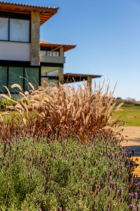 Bancos, espreguiçadeiras ou pufes posicionados em pontos estratégicos permitem que as pessoas se conectem com o jardim, tornando a experiência sensorial completa e acolhedora.