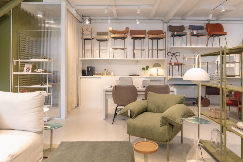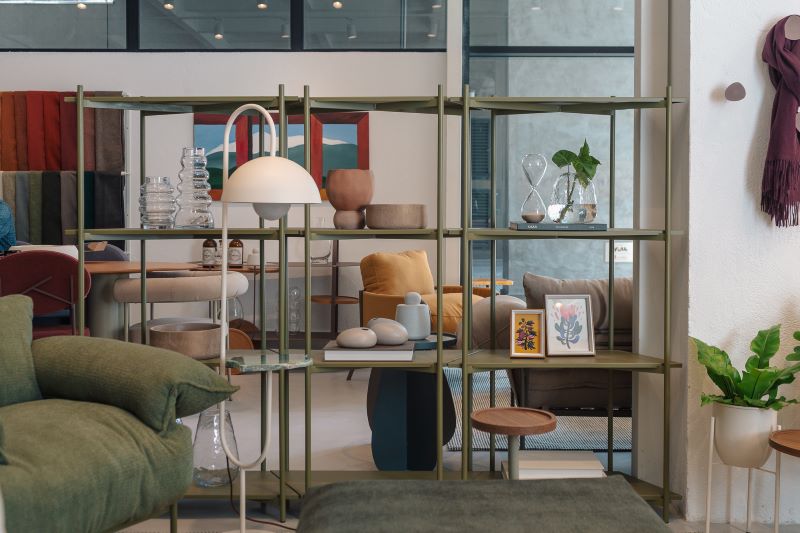 Com 160m² divididos entre térreo e mezanino, o guide shop de São Paulo foi concebido para apresentar ao público a amplitude do portfólio da marca — que inclui sofás modulares, poltronas, mesas de apoio, cadeiras, estantes e carrinhos organizadores. A exposição das peças é complementada por mostruários generosos, com faixas de tecido em tamanho real, que permitem ao cliente experimentar mais de 400 possibilidades de combinações de cores de tecidos e metais – e personalizar os móveis de acordo com seu estilo.