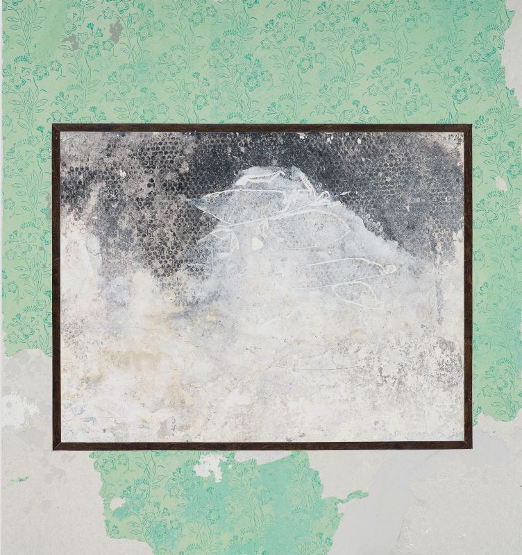 “Então, lá (na Bourse de Commerce) e aqui tem uma grande pintura, não é? Eu tinha essa captura quase perdida. Faltavam muitos pedaços. Quando eu transfiro, algumas partes não vêm. E aqui ela ficou no lugar da pintura que está lá. Essas ‘janelinhas’ são panos. Cada uma é um pedaço de pano, colado cuidadosamente”, conta o artista. “Quando eu falo que é um espaço, você vê o espaço porque tem a profundidade, a superfície é muito presente por causa da textura, mas se você vê o espaço fica mais complexo. Este trabalho é a colagem dessas transferências de matéria para o pano que eu chamo de captura. Eu chamava de monotipia, mas não é. O trabalho tem uma transferência da matéria que estava na parede. É uma vez só”, diz.