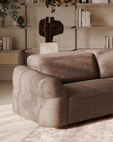 O sofá está disponível em versões modulares e fixas, oferecendo múltiplas configurações para se adaptar a qualquer ambiente e necessidade. Essa versatilidade permite ao usuário criar composições personalizadas, explorando o equilíbrio entre forma e função, seja para momentos de convívio social ou para o refúgio individual do descanso.