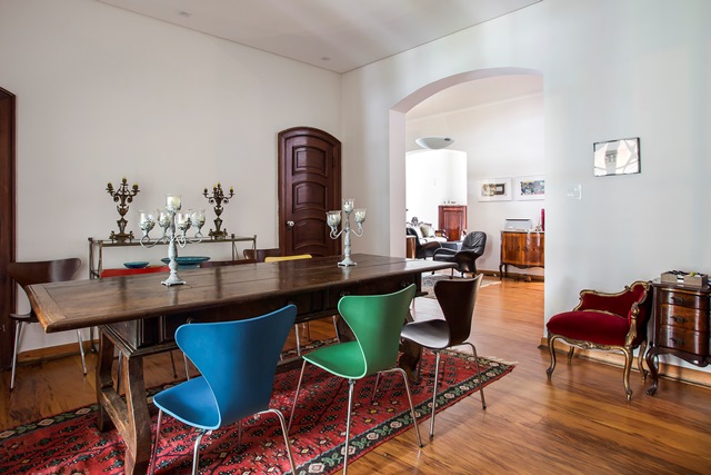 Cores intensas ganham protagonismo, verdes profundos, azuis densos e tons terrosos, equilibradas por uma base bem estruturada. As paredes podem receber papéis de parede gráficos ou pinturas artísticas; o piso, tapetes com padronagens marcantes; e o mobiliário, peças icônicas ao lado de achados contemporâneos. A iluminação, pensada em camadas, contribui para destacar texturas e criar atmosferas acolhedoras.
