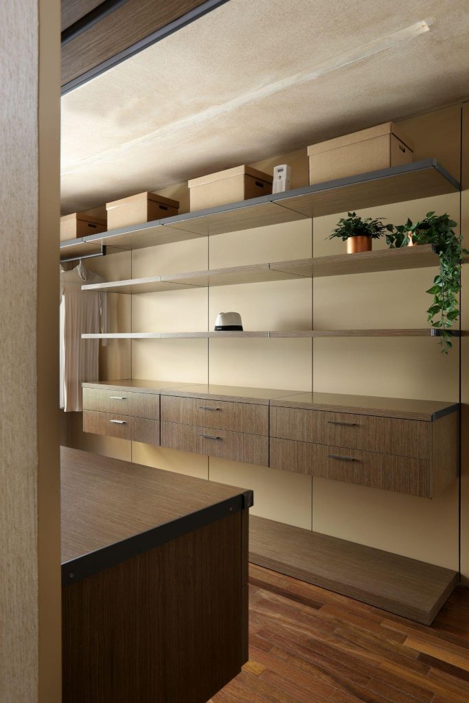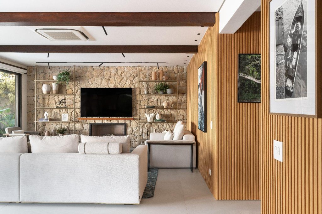 Em outro projeto, o Decorado Ibiatã, da Setin Incorporadora, pelo Sala2 Arquitetura, a linha Linear é explorada em paleta de tons terrosos e neutros, com closets que combinam palha e madeira natural, reafirmando escolhas sustentáveis e de baixo impacto.
