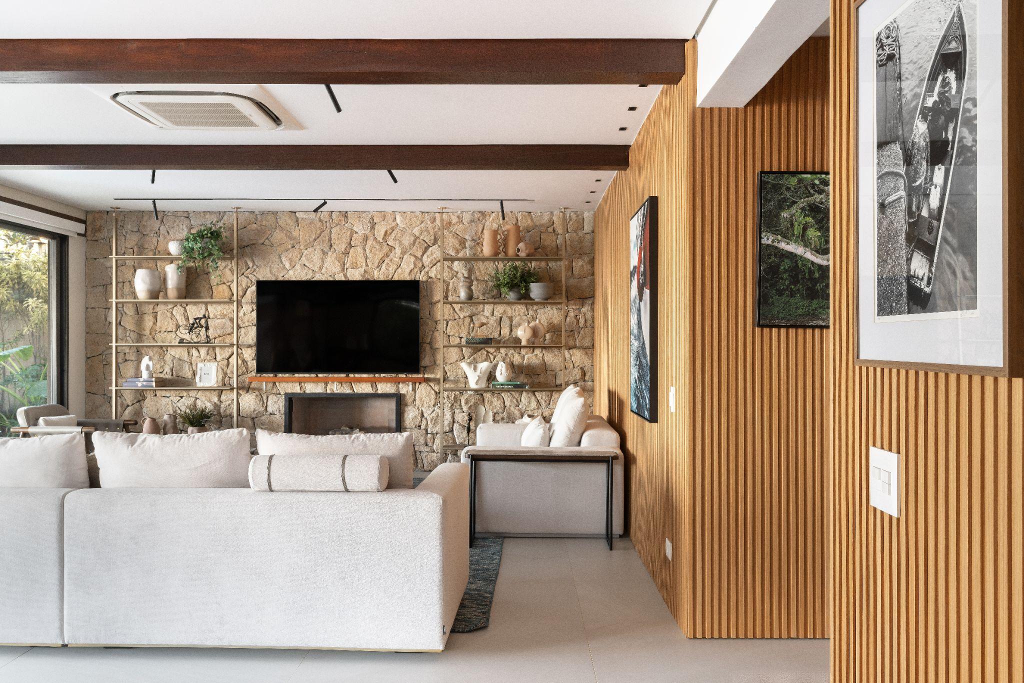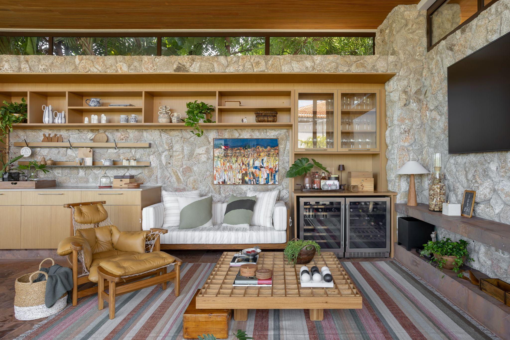 Com estilo orgânico e toques artesanais, Cacau Ribeiro utiliza as linhas Essential, Shaker e Stilo em composição com revestimentos em pedra. O mobiliário Ornare incorpora nichos e prateleiras abertas, que abrigam objetos pessoais e memórias, trazendo autenticidade e um diálogo direto com a paisagem natural.