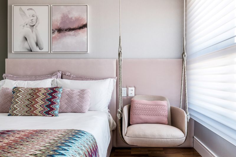 Neste projeto, a arquiteta Érica Salguero usou o rosa no quarto da filha, transmitindo conforto e bem-estar. Tudo pensado para criar um espaço perfeito para relaxar. Foto: Renato Navarro