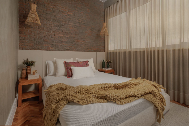 O pedido dos moradores era claro: um apartamento alegre, colorido, funcional e com ares contemporâneos — incluindo uma suíte, sala integrada e um quarto multiuso com home office e sofá-cama para receber hóspedes.
