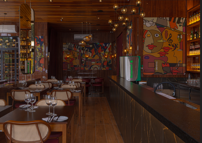 Nos restaurantes, o profissional propõe uma abordagem singular para o conjunto: cada restaurante foi pensado como uma extensão sensorial de um ritmo musical, materializando sons em formas, cores, texturas e experiências. “Cada casa tem uma personalidade e uma trilha sonora”, explica André Henning, que ficou também responsável pela ambientação externa da Rua da Música, desde o projeto de iluminação até o mobiliário do espaço.