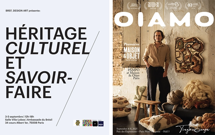 Com direção criativa do artista e designer Tiago Braga, a Oiamo participa da exposição Héritage Culturel et Savoir-Faire, de 3 a 5 de setembro de 2025, na Embaixada do Brasil em Paris. O evento integra o circuito oficial da Paris Design Week e celebra os 200 anos das relações diplomáticas entre Brasil e França.