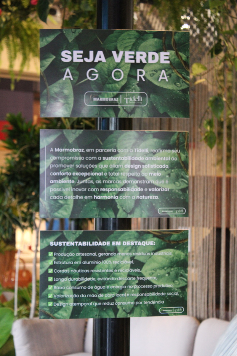 Sustentabilidade está no cerne das duas marcas parcerias. Na produção da Tidelli, alta durabilidade é o foco principal, garantindo que cada peça acompanhe o usuário por longos períodos. O serviço de reforma e assistência oferecido pela Marmobraz e Tidelli ainda permite dar nova vida às peças, com renovação de acabamento, cores e tecidos, prologando a vida útil das peças.