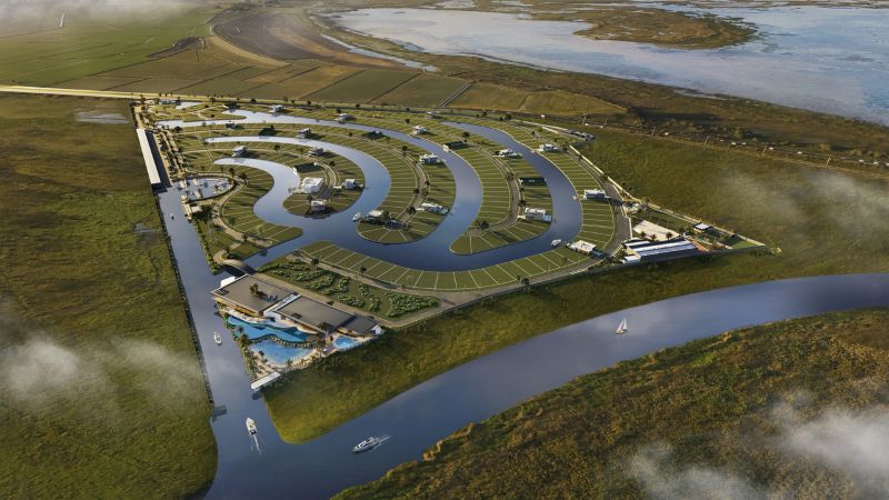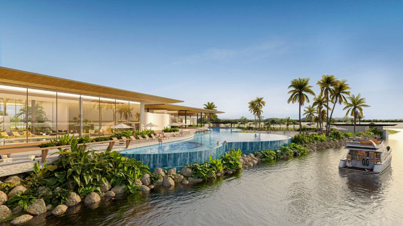 Com 40,6 hectares de área, o condomínio integra um masterplan de 320 hectares que prevê, futuramente, novos empreendimentos residenciais, comerciais e até a possibilidade de um aeroporto. Seu complexo de lazer é um capítulo à parte: praia artificial de águas cristalinas com mais de 2 mil m², bar molhado, piscina de borda infinita de 960 m², piscina infantil e solarium compõem o cenário à beira do canal.
