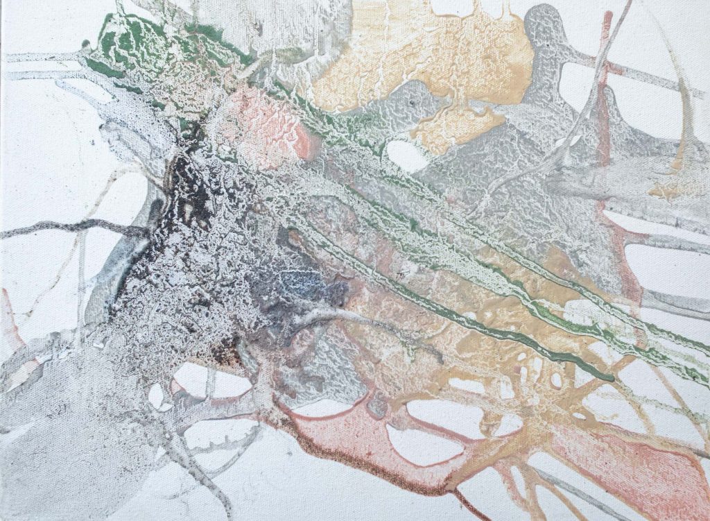 Benoît Fournier. Sem título. Série Paisagem metabólica. 2025, pigmentos minerais e rastros de minhocas sobre tela
