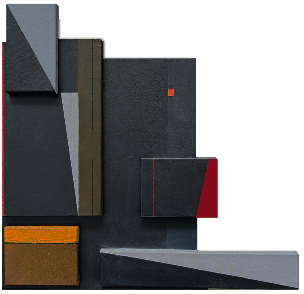 Kakati. Sem título. série tridimensionais em cor. 2025. Sobreposição de telas, esmalte e acrílico sobre tela